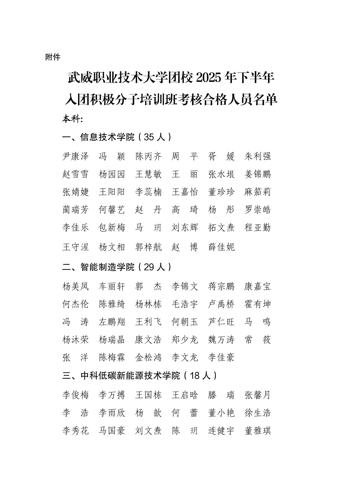 武威職業(yè)技術(shù)大學(xué)團(tuán)校2025年下半年入團(tuán)積極分子培訓(xùn)班考核合格人員名單公示