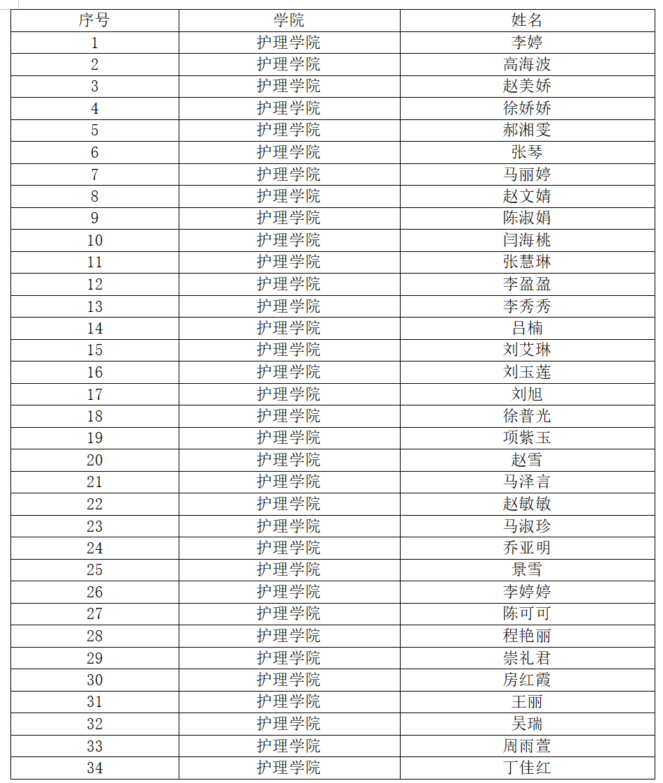 護(hù)理學(xué)院關(guān)于2025年國家助學(xué)金獲評人選的公示