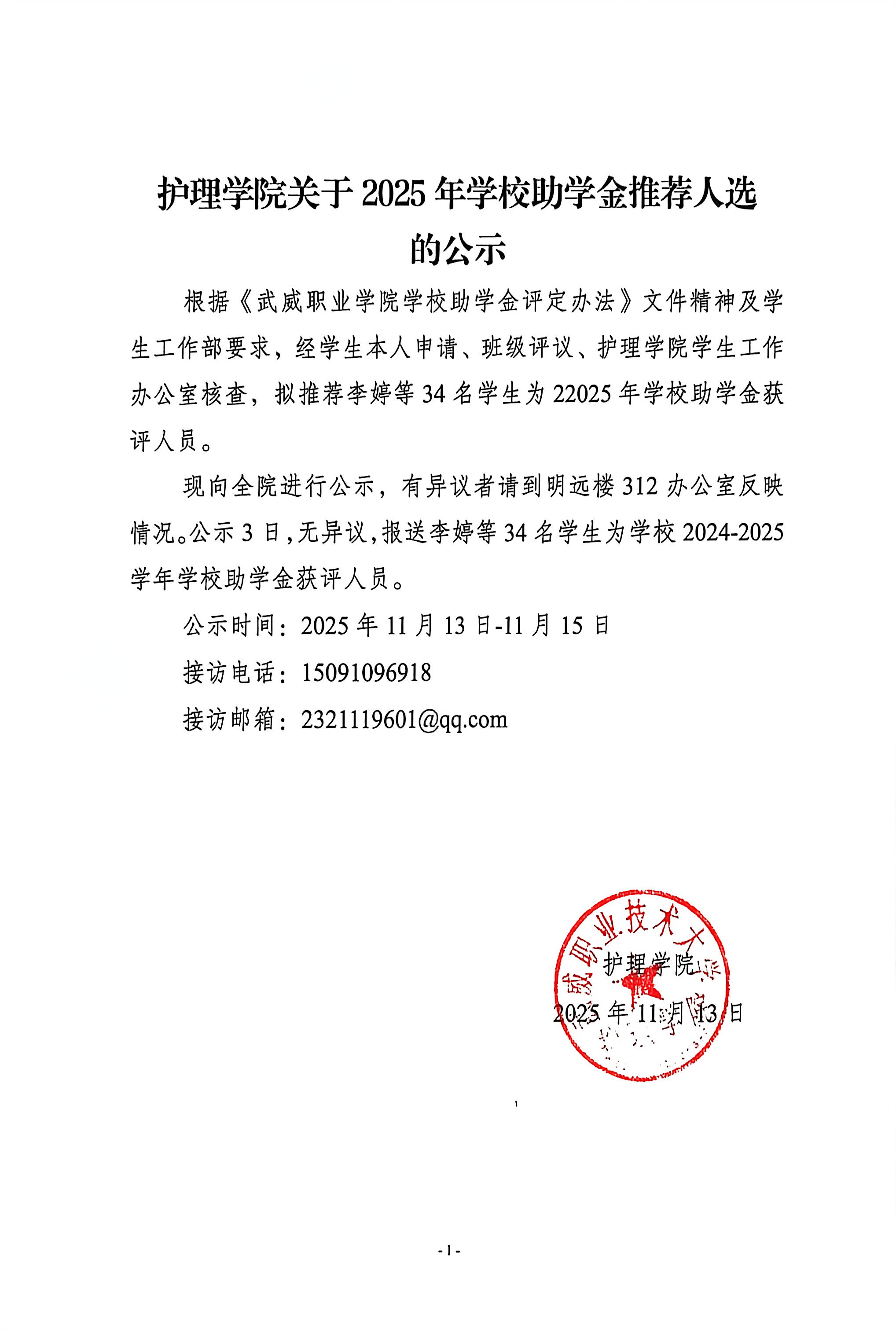 護(hù)理學(xué)院關(guān)于2025年學(xué)校助學(xué)金推薦人選的公示