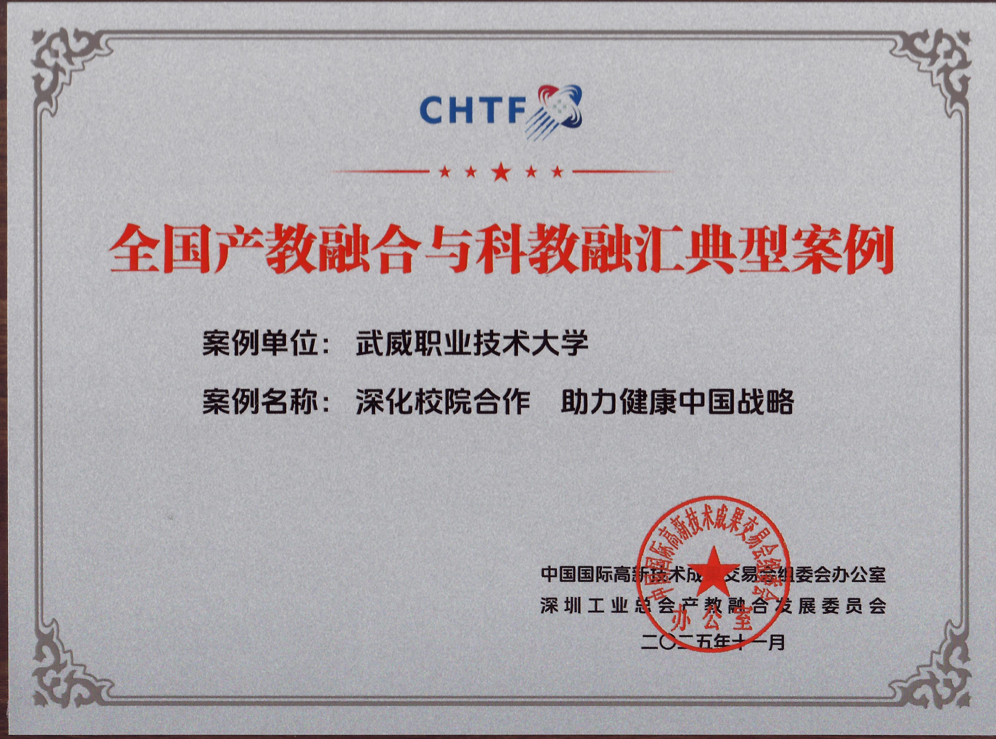 近日,第二十七屆中國國際高新技術(shù)成果交易會組委會公布產(chǎn)教融合與科教融匯典型案例評選結(jié)果,我校報(bào)送的《深化校院合作 助力健康中國戰(zhàn)略——武威職業(yè)技術(shù)大學(xué)與甘肅省武威腫瘤醫(yī)院開展校院合作新實(shí)踐》成功入選《全國產(chǎn)教融合與科教融匯典型案例匯編》,標(biāo)志著我校在實(shí)施科教融匯行動,推動健康人才培養(yǎng)實(shí)踐獲得國家級平臺認(rèn)可。