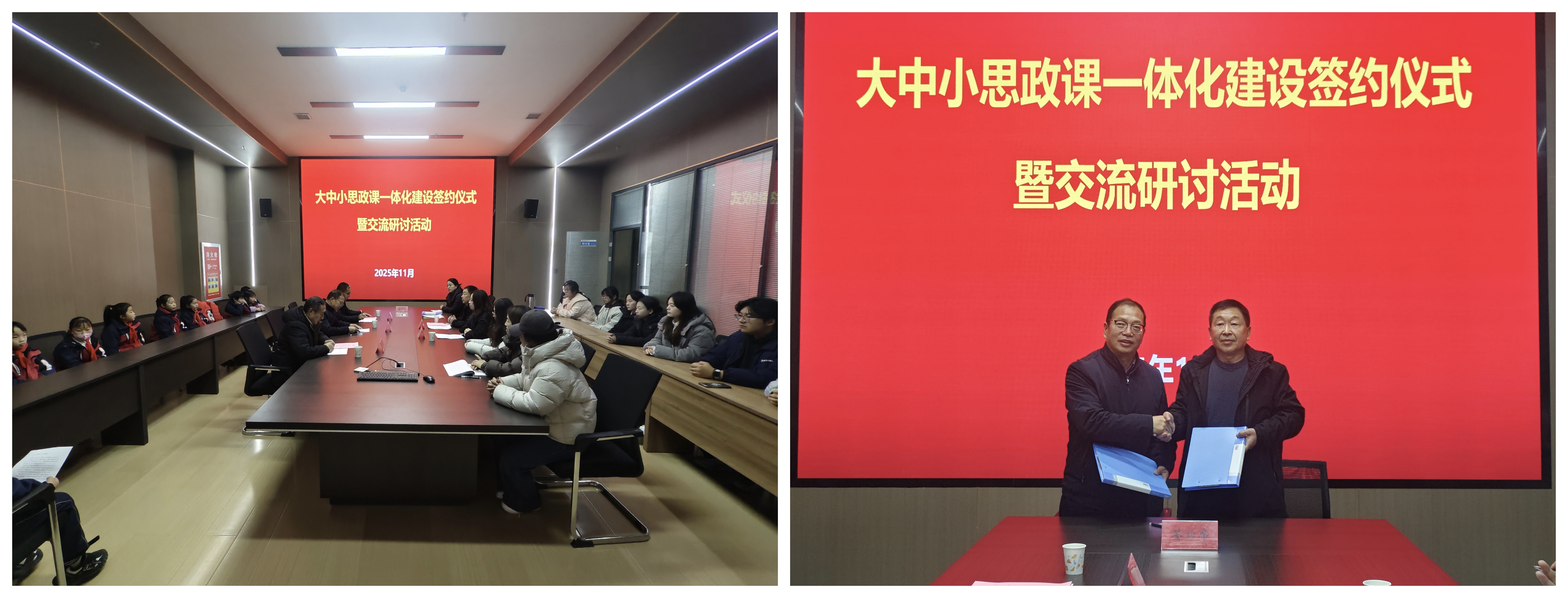 簽約儀式上,劉心和徐主年分別致辭,雙方共同簽署了《大中小學思政課一體化共建協(xié)議書》,并圍繞共建目標、合作內(nèi)容與實施機制進行了深入交流。此次合作簽約為院校雙方搭建了資源共享、優(yōu)勢互補、協(xié)同育人的平臺,希望雙方在師資隊伍共建、實踐資源共享、課程創(chuàng)新突破等方面多維度協(xié)同推進,不斷探索一體化建設的長效機制,打破各學段在課程、資源、師資等方面的壁壘,實現(xiàn)有機銜接,促進優(yōu)質(zhì)教學經(jīng)驗互鑒、特色教學模式推廣,共同提升立德樹人效果。