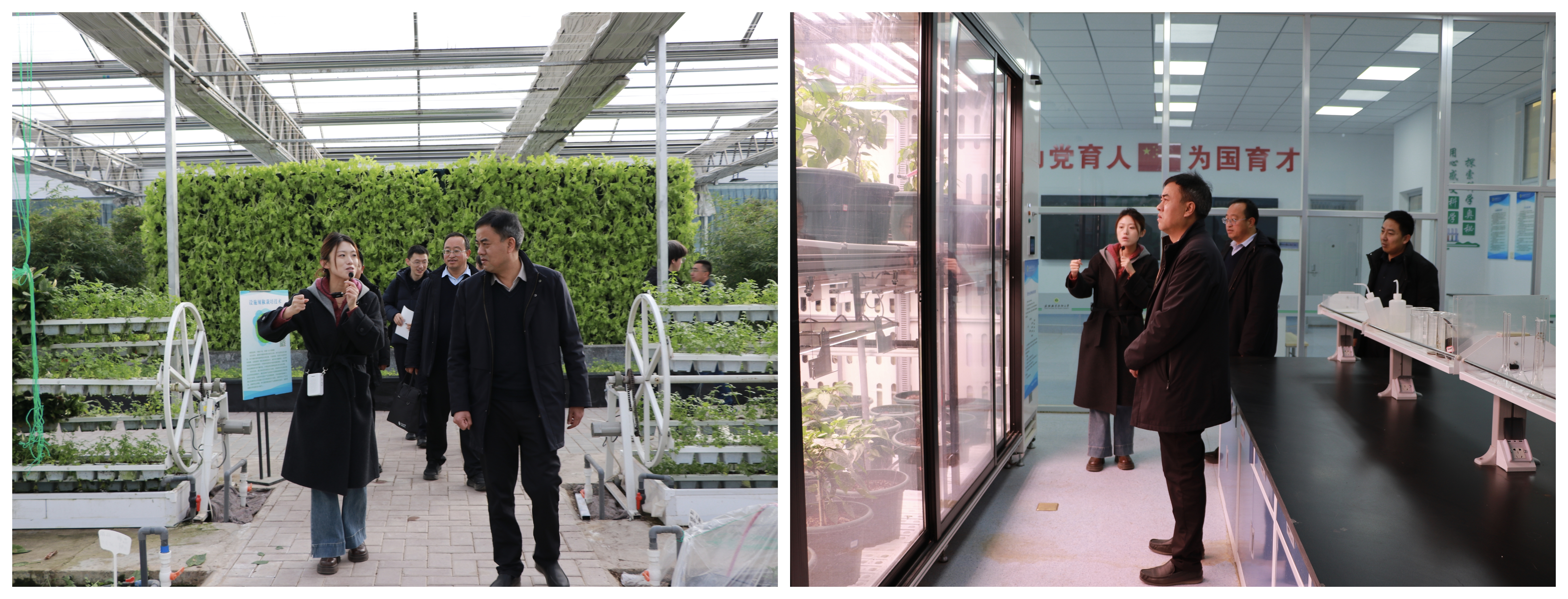 調(diào)研期間,莊浪職業(yè)教育中心一行四人先后參觀了農(nóng)產(chǎn)品質(zhì)量安全與檢測實訓(xùn)室、智慧設(shè)施農(nóng)業(yè)實訓(xùn)室、現(xiàn)代農(nóng)業(yè)生產(chǎn)性實訓(xùn)基地等多個實驗實訓(xùn)場所。學(xué)院專業(yè)教師詳細(xì)介紹了各實訓(xùn)室的建設(shè)標(biāo)準(zhǔn)、設(shè)備配置、教學(xué)功能及實訓(xùn)課程開展情況,展示了學(xué)院在教育教學(xué)方面取得的成果。在現(xiàn)代農(nóng)業(yè)生產(chǎn)性實訓(xùn)基地,雙方圍繞中高職貫通培養(yǎng)、實驗實訓(xùn)室建設(shè)等內(nèi)容深入交流,申賓德介紹了學(xué)院專業(yè)特色、課程體系、師資隊伍及學(xué)生升學(xué)就業(yè)等方面的內(nèi)容。王瑾楠結(jié)合本校專業(yè)辦學(xué)實際,交流了在貫通培養(yǎng)過程中遇到的課程銜接、人才培養(yǎng)標(biāo)準(zhǔn)等問題。