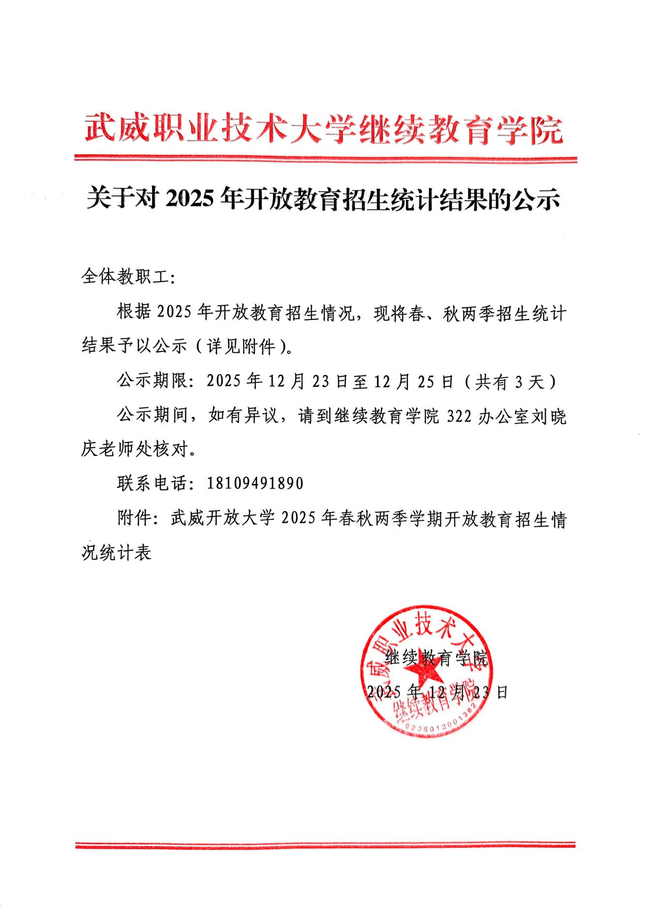 關(guān)于對2025年開放教育招生統(tǒng)計結(jié)果的公示