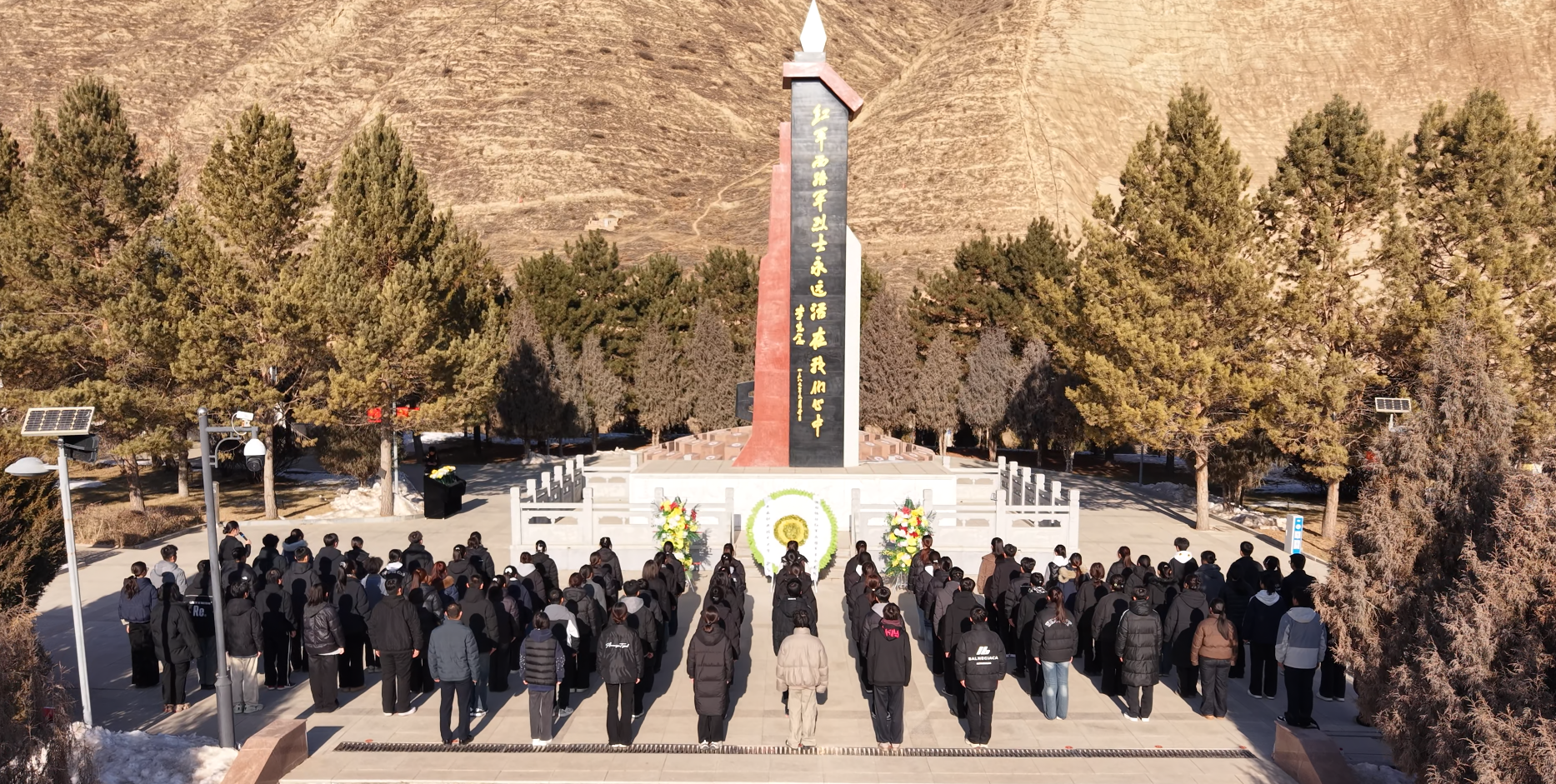 活動伊始,在莊嚴肅穆的烈士紀念碑前,全體人員列隊肅立,懷著無比崇敬的心情,深切緬懷在革命戰(zhàn)爭中英勇獻身的烈士。紀念館講解員深情講述了紅西路軍征戰(zhàn)河西、浴血古浪的悲壯歷程和崇高精神,將大家?guī)Щ氐侥嵌畏榛疬B天、艱苦卓絕的歲月,深刻感悟革命先輩堅定不移的理想信念、視死如歸的英雄氣概和與人民群眾的血肉聯(lián)系。教師代表向烈士紀念碑敬獻花籃,并仔細整理緞帶,表達無限哀思與崇高敬意。全體人員手持象征純潔與追思的白菊,緩步繞行烈士墓區(qū),逐一瞻仰,鞠躬致意,寄托對革命先烈的深切緬懷。