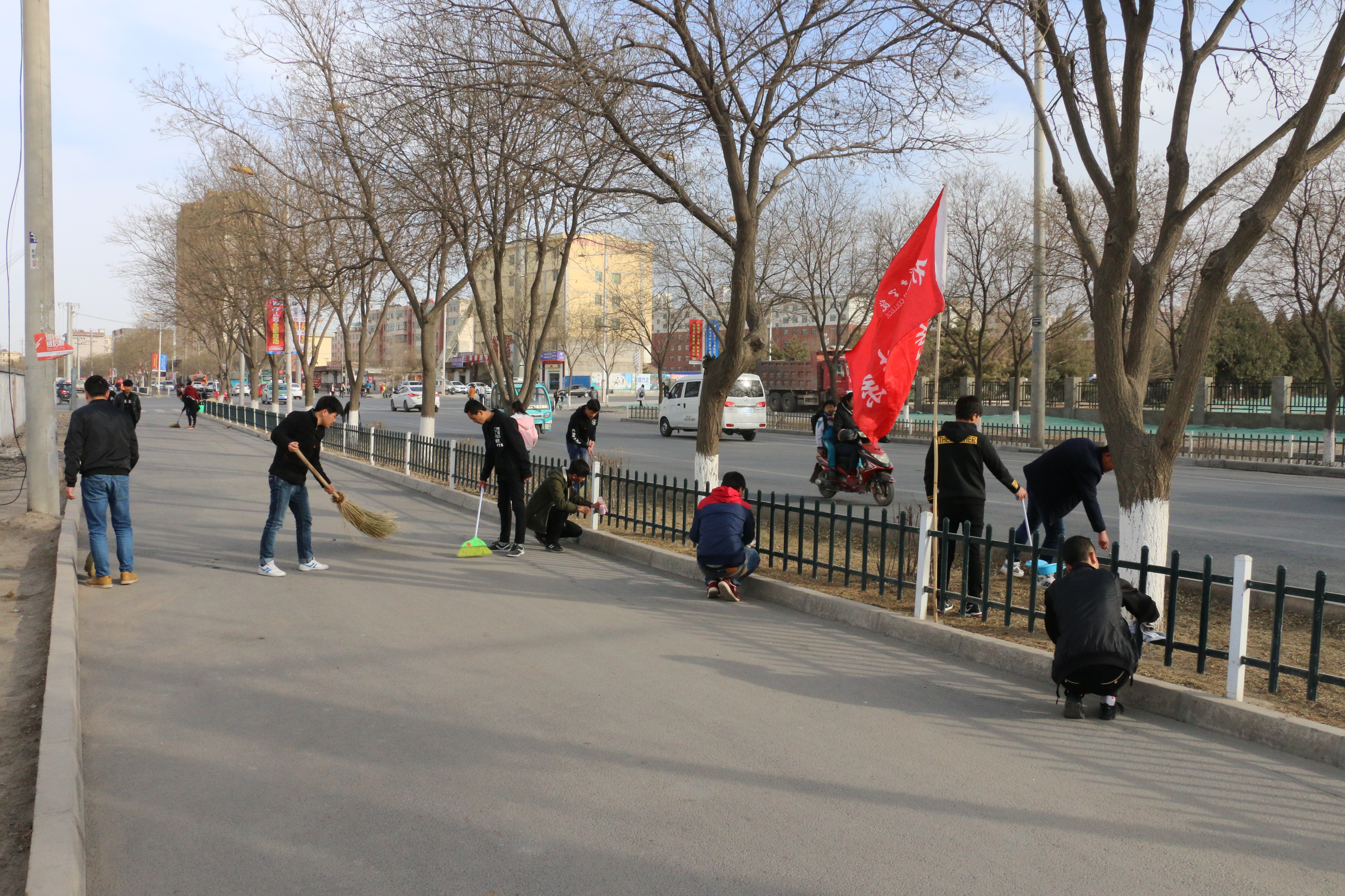 3月3日下午,現(xiàn)代農(nóng)業(yè)技術(shù)系50名志愿者在武威市文化廣場參加了全市志愿者集中服務(wù)日活動;學(xué)院327名青年志愿者清掃了周邊街道衛(wèi)生,集中清潔道路兩邊的柵欄、公交車站,清除小廣告,凈化了城市衛(wèi)生和生活環(huán)境。