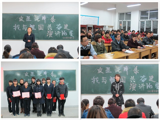 大家在青春動人的旋律下迎來了參賽選手慷慨激昂的演講。同學們以“我與祖國共奮進”主題,從不同的角度用發(fā)自肺腑的語言由衷的抒發(fā)了自己的愛國之情,道出了同學們“憶艱苦歲月、做追夢青年、鑄愛國之心”的心聲。經(jīng)過激烈的角逐,設(shè)施農(nóng)業(yè)技術(shù)專業(yè)王生行以《奮斗吧,青年!》榮獲一等獎,趙亞男、蒲娟和孔硯浩分別以《樹愛國之前 立報國之志》、《一座豐碑的紀念》和《謹記一二九 共鑄中國夢》精彩演講榮獲二等獎,其余同學獲得三等獎。晏主任對此次比賽做出了肯定的評價,首先肯定了每位選手的精神面貌和勇氣;其次,對每位演講選手精彩點評;最后,通過演講比賽要認識到自身存在不足,努力鍛煉自我。