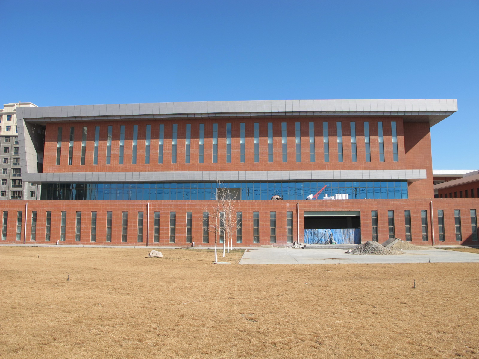 體育館建設項目已完成外立面檐口的安裝,采用銀灰色2.5mm厚氟碳沖孔鋁單板,已完成玻璃幕墻的安裝,外立面盡顯端莊大氣。復工后,進行一層上人屋面的防水層施工和防滑磚的鋪設,完成一層頂女兒墻玻璃扶手的安裝。圖書館建設項目已完成外墻陶土劈開磚的粘貼、東西兩側外立面鋁板裝飾施工。復工后,繼續(xù)進行內部施工及裝修。