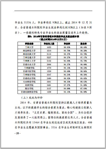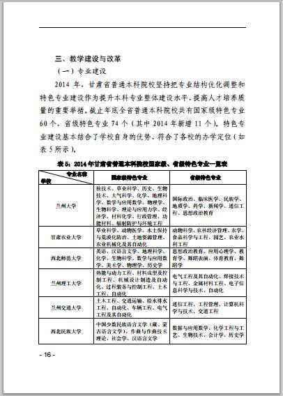 甘肅省普通高等學(xué)校2014年本科教學(xué)質(zhì)量報告