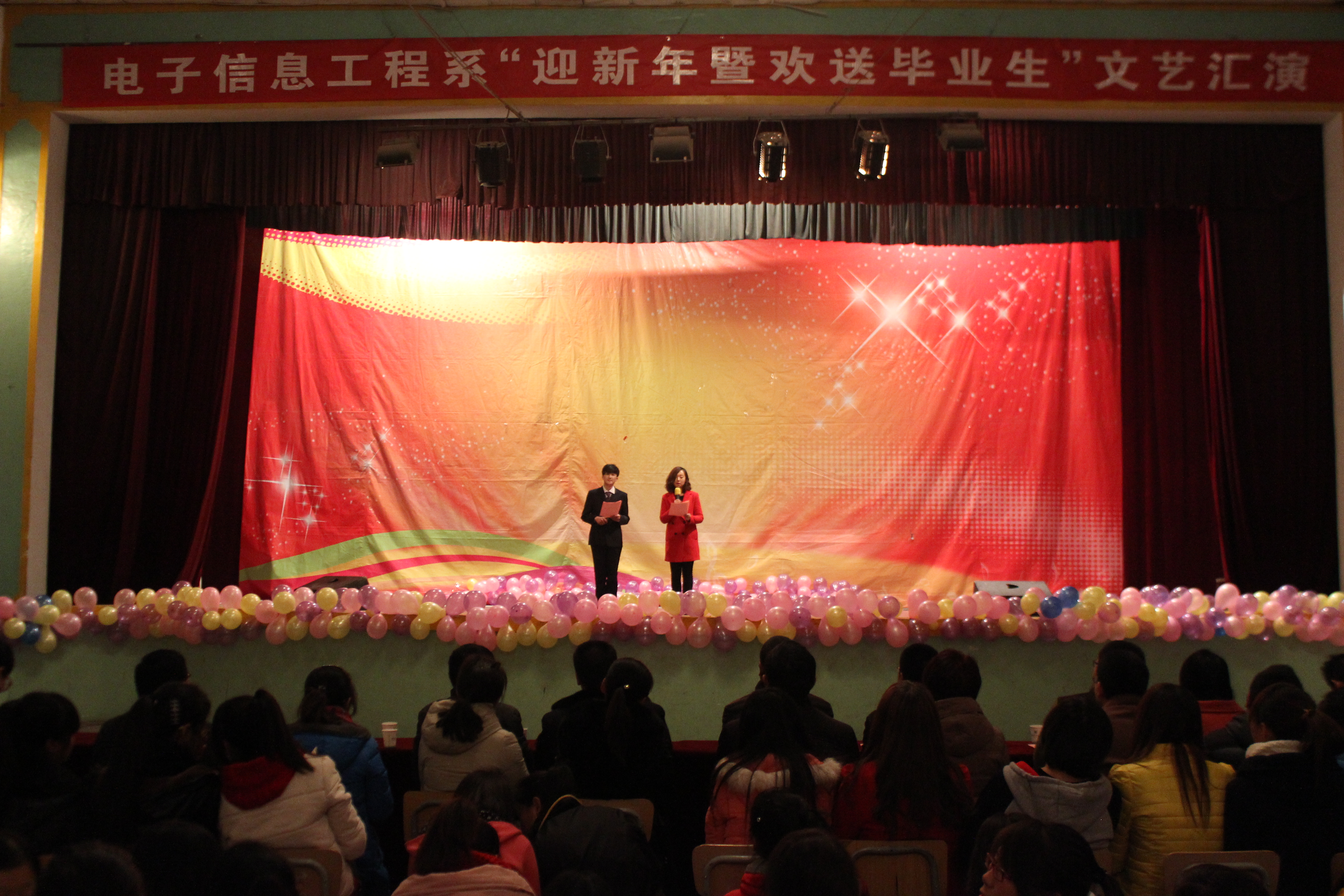 12月18日晚,由電子信息工程系舉辦的“迎新年暨歡送畢業(yè)生”文藝匯演,在學(xué)院大禮堂順利舉行。學(xué)生處潘處長(zhǎng)、院團(tuán)委王書記、電信系白主任、電信系張書記等領(lǐng)導(dǎo)老師及電信系300多名學(xué)生觀看了此次演出。