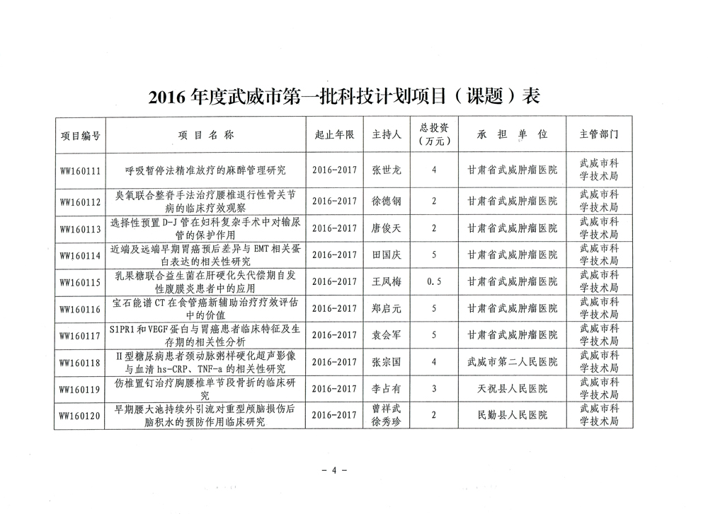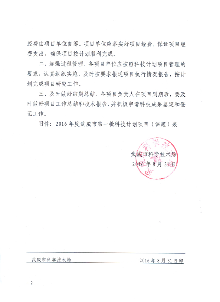 武威市科學(xué)技術(shù)局關(guān)于下達(dá)2016年度武威市第一批科技計(jì)劃項(xiàng)目的通知
