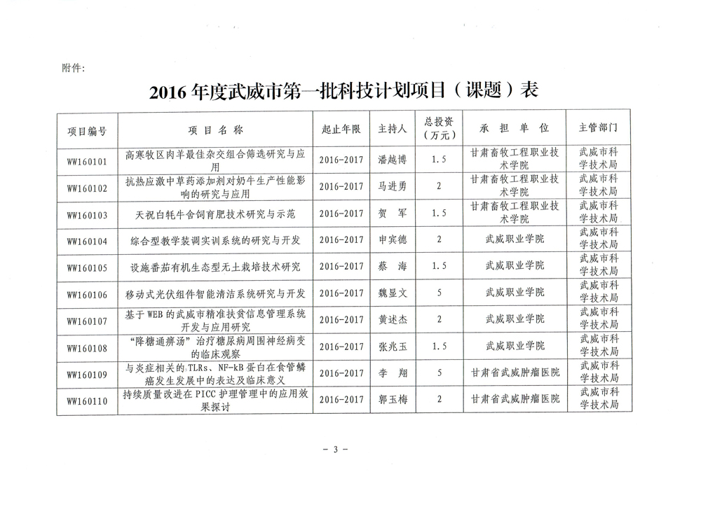 轉(zhuǎn)發(fā)武威市科學(xué)技術(shù)局關(guān)于下達(dá)武威市2017年度第三批市列科技計(jì)劃項(xiàng)目的通知