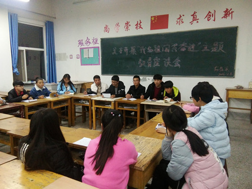通過(guò)組織各班團(tuán)干部開展 “我與祖國(guó)共奮進(jìn)”主題座談會(huì),讓團(tuán)干部們對(duì)歷史有了深刻的了解,也讓同學(xué)們?cè)谶@次座談會(huì)中深刻領(lǐng)悟到身為中華兒女要勿忘恥辱,為實(shí)現(xiàn)中華民族偉大復(fù)興的中國(guó)夢(mèng)而勤奮學(xué)習(xí)。同時(shí),各班團(tuán)支部以形式多樣的主題團(tuán)會(huì),表達(dá)出為了實(shí)現(xiàn)“中國(guó)夢(mèng)”,讓屈辱的歷史不再重演,將要萬(wàn)分珍惜今天這來(lái)之不易的和平生活,努力學(xué)習(xí),不斷進(jìn)取。