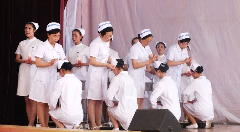為繼承和弘揚(yáng)南丁格爾精神,積極推動(dòng)護(hù)理專業(yè)人才建設(shè)和職業(yè)內(nèi)涵塑造,展示我院護(hù)理專業(yè)師生風(fēng)采,在第106個(gè)國(guó)際護(hù)士節(jié)來(lái)臨之際,學(xué)院于5月12日下午在大禮堂隆重舉辦了慶祝國(guó)際護(hù)士節(jié)活動(dòng),武威市衛(wèi)生計(jì)生委副主任潘玉華、學(xué)院黨委副書記趙明、紀(jì)委書記張富國(guó)、副院長(zhǎng)王永緒、直屬附屬醫(yī)院護(hù)理部主任、相關(guān)處室領(lǐng)導(dǎo)及護(hù)理系全體師生1200余人參與了本次活動(dòng)。活動(dòng)包括護(hù)士授帽儀式,護(hù)理實(shí)踐技能操作表演,第四屆護(hù)理技能大賽頒獎(jiǎng),慶祝“5.12”護(hù)士節(jié)文藝演出等內(nèi)容。