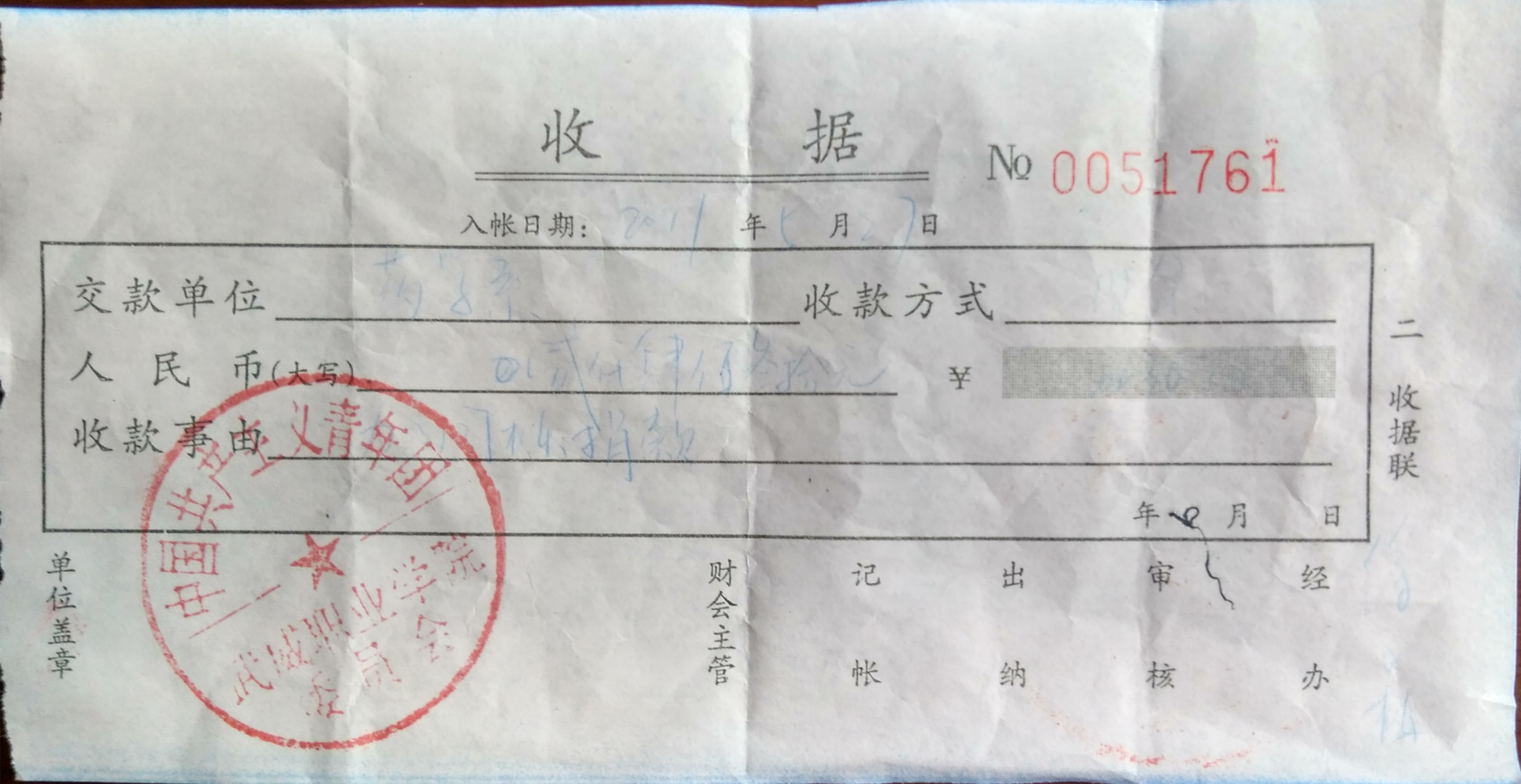另附:捐款上交院團委發(fā)票掃描件。