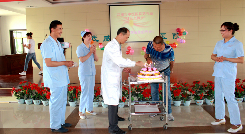 致辭后,毛照海與腎友代表共同舉行了切蛋糕儀式。護士們推著小車,把一塊塊象征幸福美滿的蛋糕和水果送到了腎友們的面前,讓他們品償生活的甜蜜。