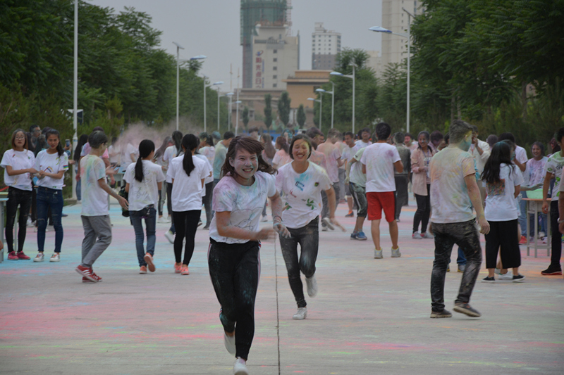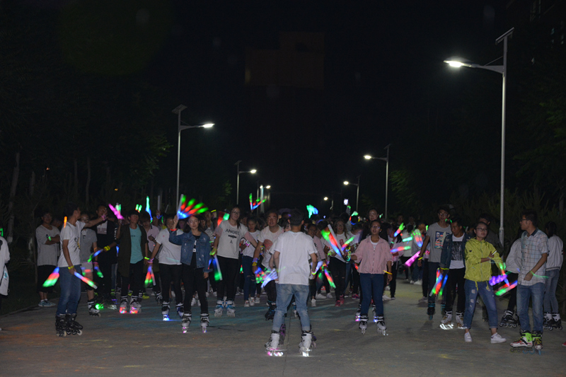 下午三點(diǎn),學(xué)院團(tuán)委宋文龍老師在啟動(dòng)儀式上做了熱情洋溢的致辭,團(tuán)學(xué)干部帶領(lǐng)參賽選手開啟了本次活動(dòng)的奔跑。本次活動(dòng)由“趣味沖關(guān)”“彩虹跑”“熒光夜跑”三個(gè)環(huán)節(jié)組成。“趣味沖關(guān)”由一系列小游戲組成,需要大家齊心協(xié)力、互相配合完成,同學(xué)們滿懷激情,在奔跑的同時(shí)體驗(yàn)著合作的趣味與快樂。掌聲、笑聲、加油聲此起彼伏,選手與觀眾互動(dòng)交流,整個(gè)過(guò)程充滿了愉悅的氣氛。下午五點(diǎn)開啟了整個(gè)活動(dòng)中最精彩的“彩虹跑”,同學(xué)們手捧玉米粉在慢跑中相互揮灑,多彩的玉米粉在他們身上留下了青春的印記。隨著夜幕降臨,精彩的“熒光夜跑”活動(dòng)隨之開始,同學(xué)們手帶熒光環(huán),舞動(dòng)熒光棒,在輪滑社成員的帶領(lǐng)下繞著校園跑動(dòng)。熒光點(diǎn)綴著夜色,歡快的音樂、青春的聲音充斥著整個(gè)校園?;顒?dòng)結(jié)束后,在學(xué)院東門小廣場(chǎng)舉行了自由晚會(huì),同學(xué)們圍成一圈,在主持人的帶動(dòng)下做互動(dòng)小游戲、自由演唱,一陣陣歡聲笑語(yǔ)回蕩在整個(gè)校園。