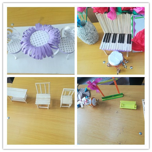 活動中,指導老師要求學生們充分利用身邊廢棄的飲料瓶、廢紙、塑料、布料、木料等廢舊材料,通過自己的創(chuàng)意,制作出體現(xiàn)科技、環(huán)保的工藝作品?;顒硬贾煤?,同學們積極參與,充分利用網(wǎng)絡搜集相關(guān)資料及設(shè)計圖案,憑借豐富的想象力和創(chuàng)造力,將生活中的廢品制作成了各種各樣的手工藝術(shù)品。