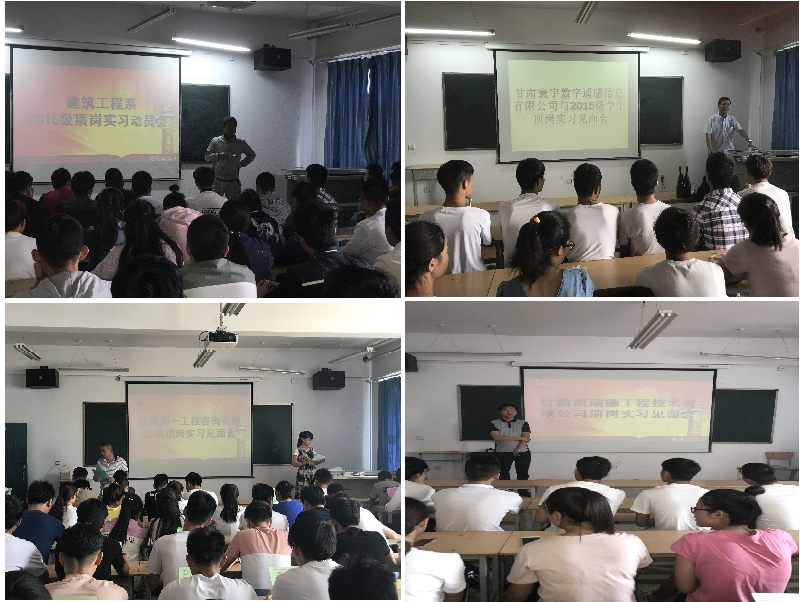 6月8日至6月16日,甘肅寰宇數(shù)字遙感信息有限公司、甘肅新一工程咨詢有限公司、國誠集團、蘭州凱瑞德工程有限公司、武威盛大集團等實習(xí)接收單位,派專人來校,舉辦企業(yè)宣講會,詳細(xì)地介紹了用人單位的管理制度、日常生活、工作崗位、薪酬待遇等,并與系上洽談了學(xué)生頂崗實習(xí)合作辦法、責(zé)任義務(wù)、安全保障、就業(yè)等涉及學(xué)生諸方面的合作細(xì)節(jié)。
