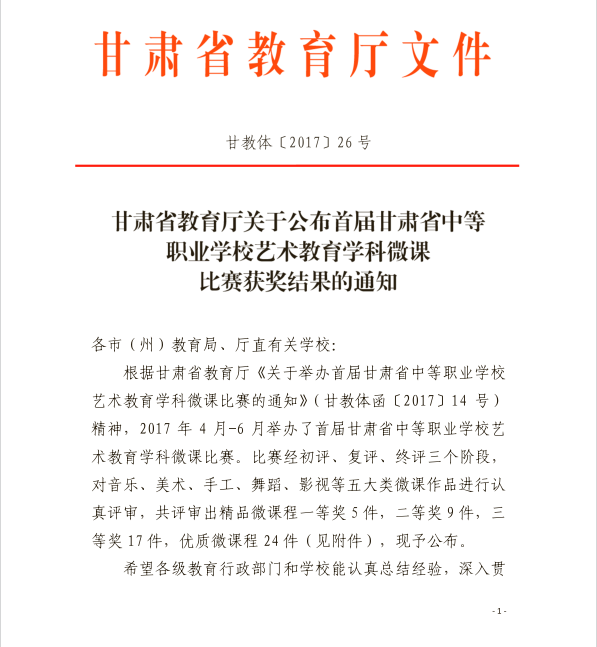 人文藝術教育系教師在首屆甘肅省中等職業(yè)學校藝術教育學科微課比賽中喜獲佳績