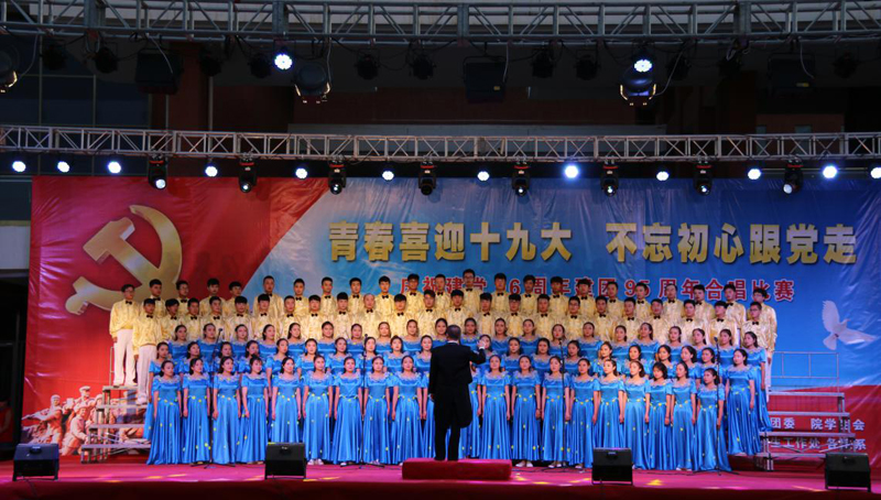 在持續(xù)半個月的合唱訓(xùn)練中,我系參加大合唱的102名同學(xué)和6位老師充分的準備,以積極飽滿的態(tài)度投入到本次大合唱比賽的訓(xùn)練中,付出了大量的精力,放棄了許多休息時間,展現(xiàn)出了不怕吃苦,堅持不懈,自強自信的精神。比賽中,隊員們齊聚在黨旗下,著裝整齊,精神飽滿,以高昂的熱情、嘹亮的嗓音唱出了對黨的擁戴,對未來的憧憬,贏得了評委及現(xiàn)場觀眾的熱烈掌聲。