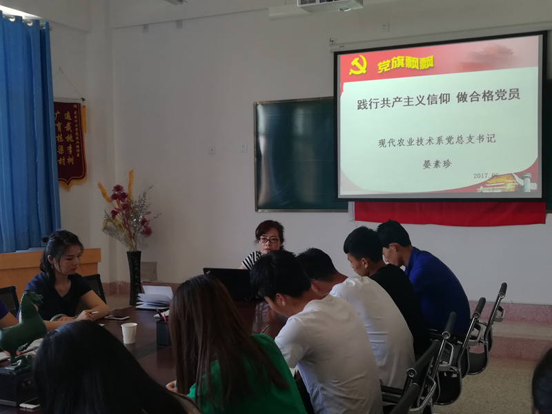 為慶祝中國共產(chǎn)黨建黨96周年華誕,深入開展“兩學一做”學習教育常態(tài)化制度化,現(xiàn)代農(nóng)業(yè)技術系黨總支于2017年7月5日在行樹樓教學區(qū)309會議室開展了黨總支書記講黨課活動。黨課由系黨總支書記晏素珍同志主講,全系黨員和入黨積極分子參加了此次活動。