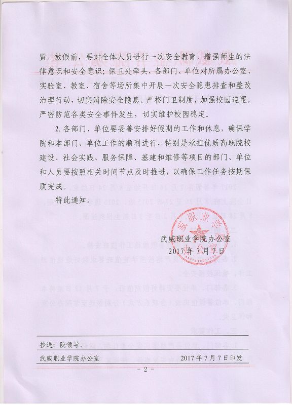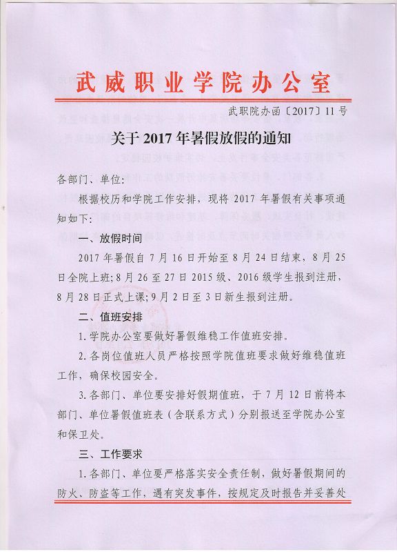 武威職業(yè)學(xué)院2017年7、8月份維穩(wěn)工作值班安排表