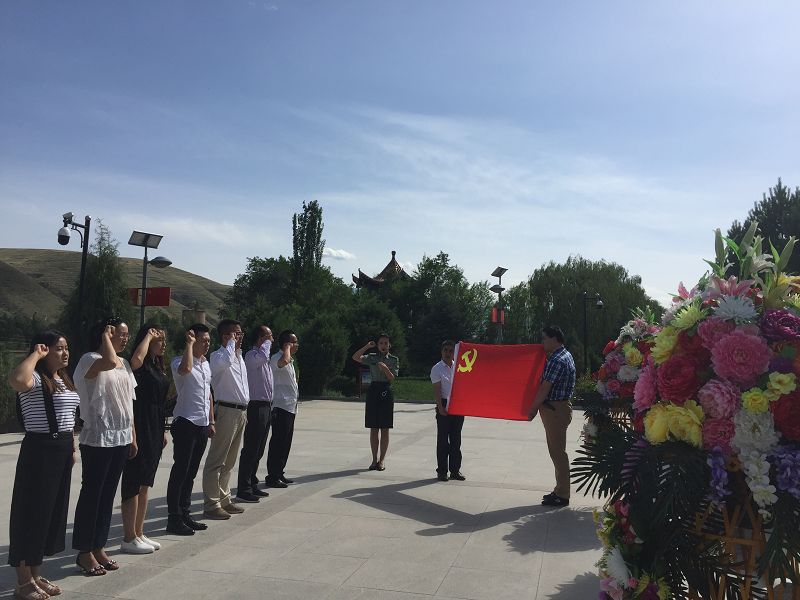 在紅軍西路軍烈士紀(jì)念碑前,面對(duì)鮮紅的黨旗,全體黨員高舉右手,莊嚴(yán)宣誓,重溫了入黨誓詞,接受黨性再教育。在參觀西路軍古浪戰(zhàn)役紀(jì)念館時(shí),大家跟隨講解員,認(rèn)真聆聽(tīng)西路軍英勇無(wú)畏﹑艱苦斗爭(zhēng)的革命故事。