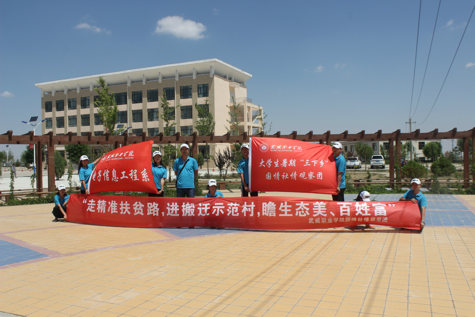 2017年暑假期間,電子信息工程系組織武威職業(yè)學(xué)院國情社情觀察團開展了以“喜迎十九大,青春建新功”為主題的大學(xué)生暑期“三下鄉(xiāng)”社會實踐活動。