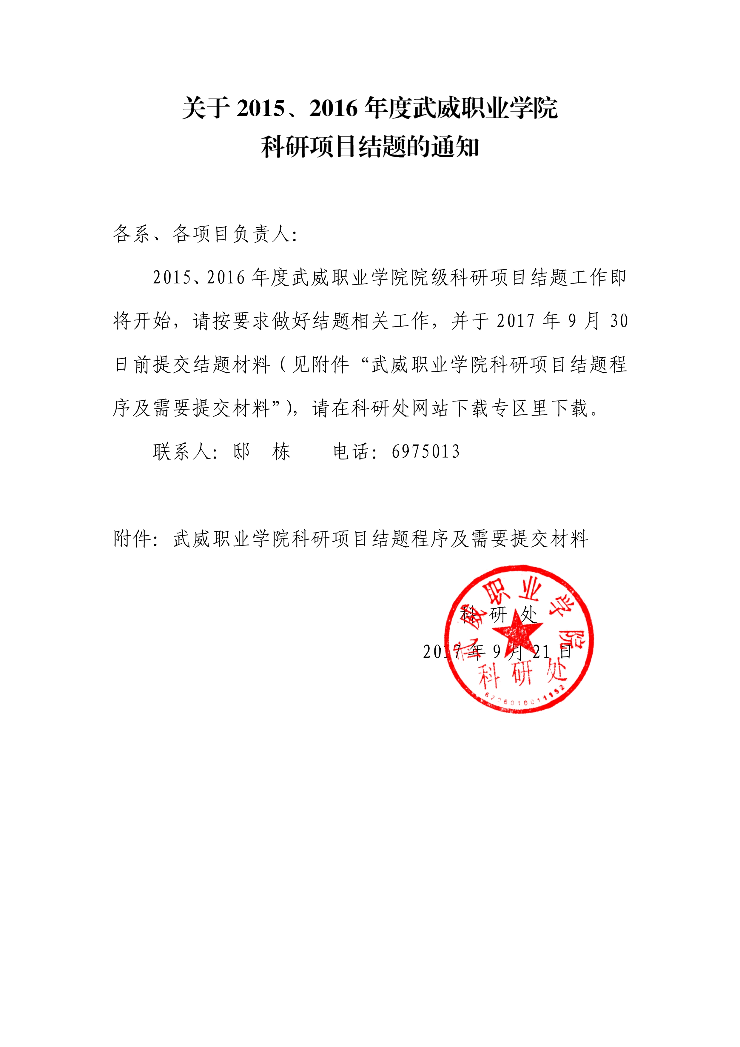 關(guān)于2015、2016年度院級(jí)科研項(xiàng)目結(jié)題的通知