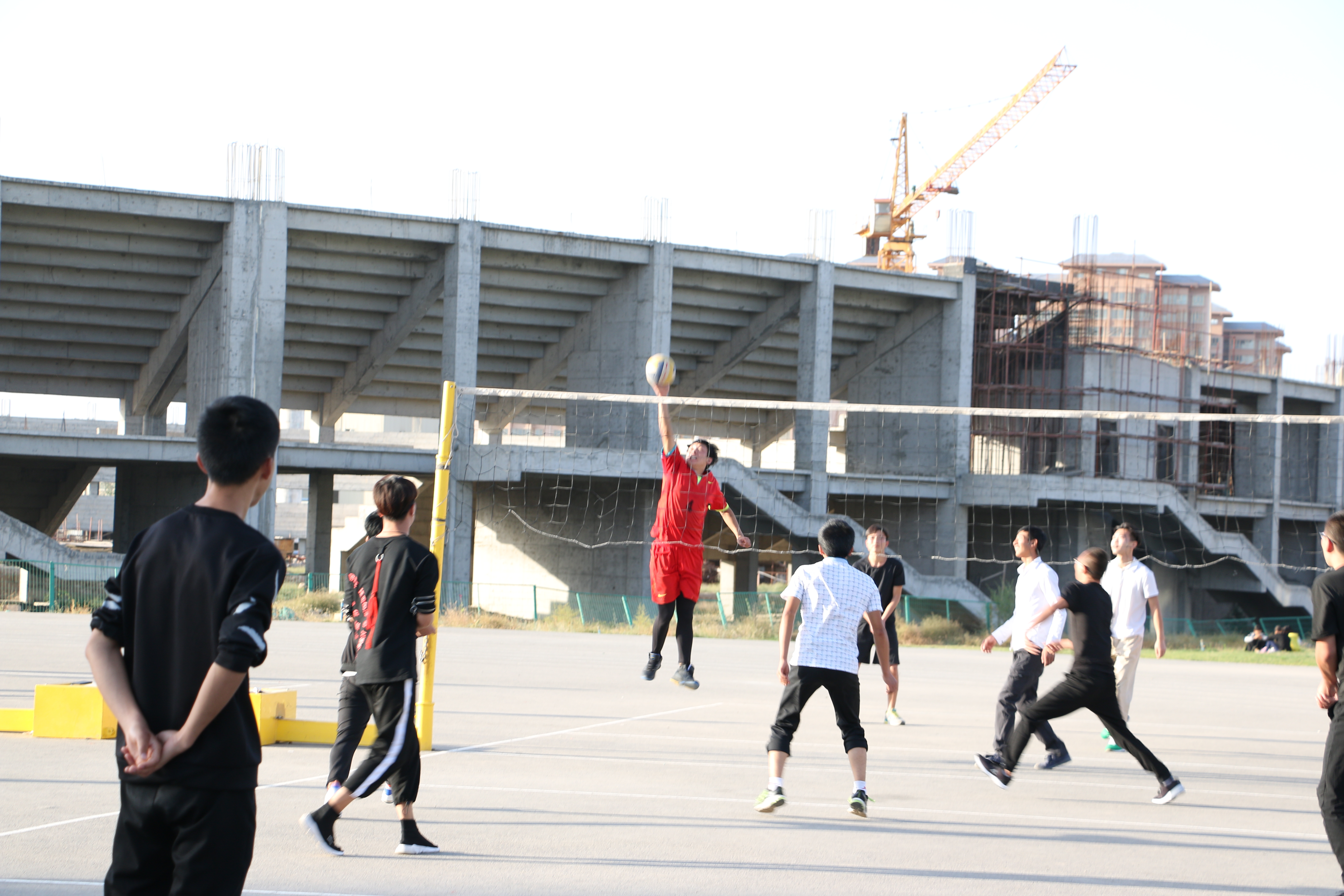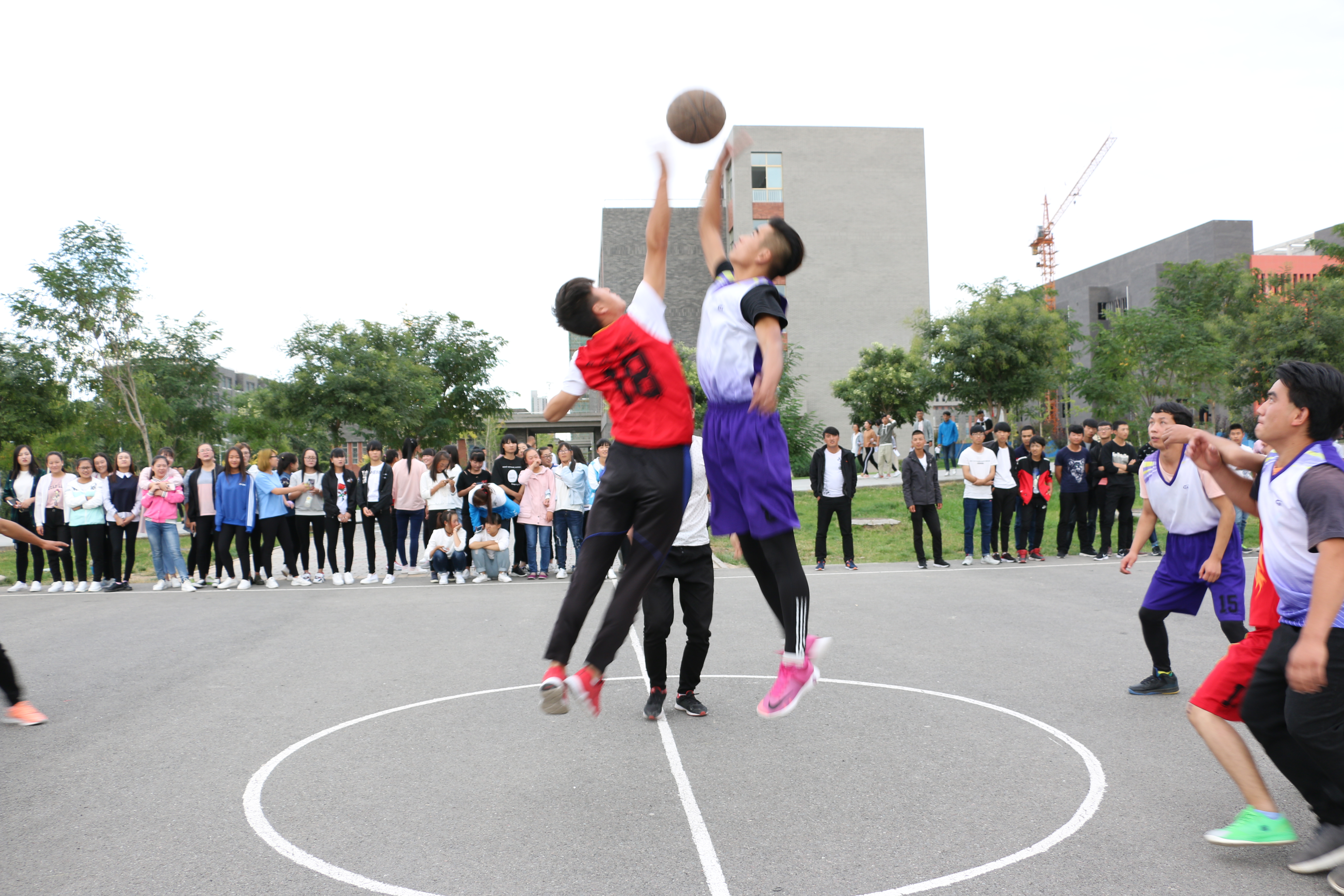 此次比賽有男子籃球、男子排球、女子籃球、女子排球共四各項(xiàng)目。經(jīng)過第一輪的淘汰賽,有八支代表隊(duì)晉級。9月25日下午,晉級的八支代表隊(duì)分別進(jìn)行了男子、女子籃球排球賽的冠亞軍爭奪賽?;@球場上,隨著裁判員一聲哨響并將籃球拋向上空,兩方隊(duì)員奮力躍起,激烈的賽事正式開始。決戰(zhàn)雙方的隊(duì)員斗智斗勇,比分不斷上升,賽事異常激烈,引得全場歡聲雷動。與此同時(shí),排球總決賽也在新排球場上展開。