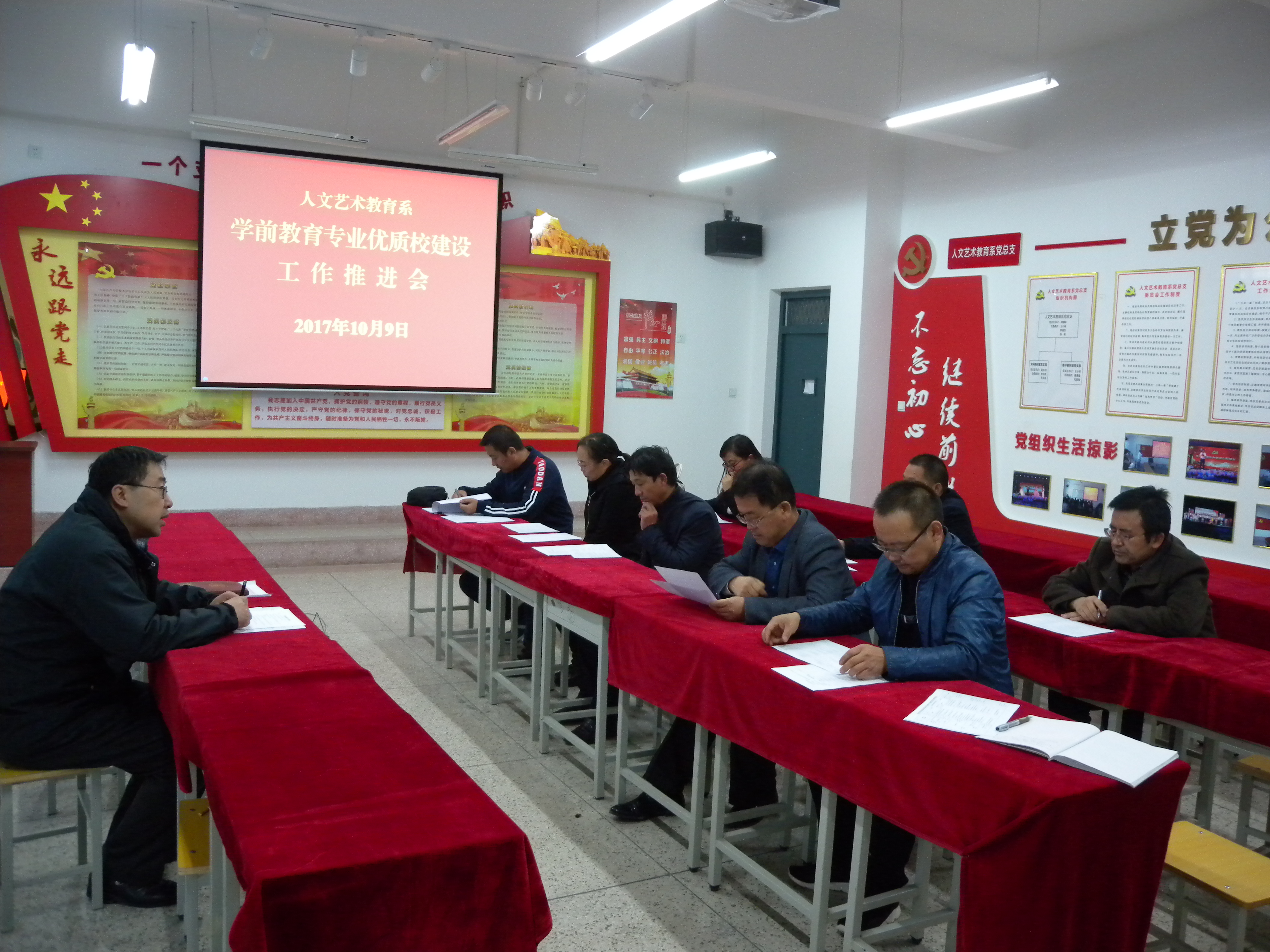 為了進(jìn)一步推進(jìn)學(xué)院優(yōu)質(zhì)高職院校建設(shè),人文藝術(shù)教育系于10月9日下午在勵勤樓209會議室召開了學(xué)前教育專業(yè)優(yōu)質(zhì)校建設(shè)推進(jìn)會。會議由系黨總支書記胡靜峰主持,人文藝術(shù)教育系學(xué)前教育專業(yè)建設(shè)項目組全體成員參加。