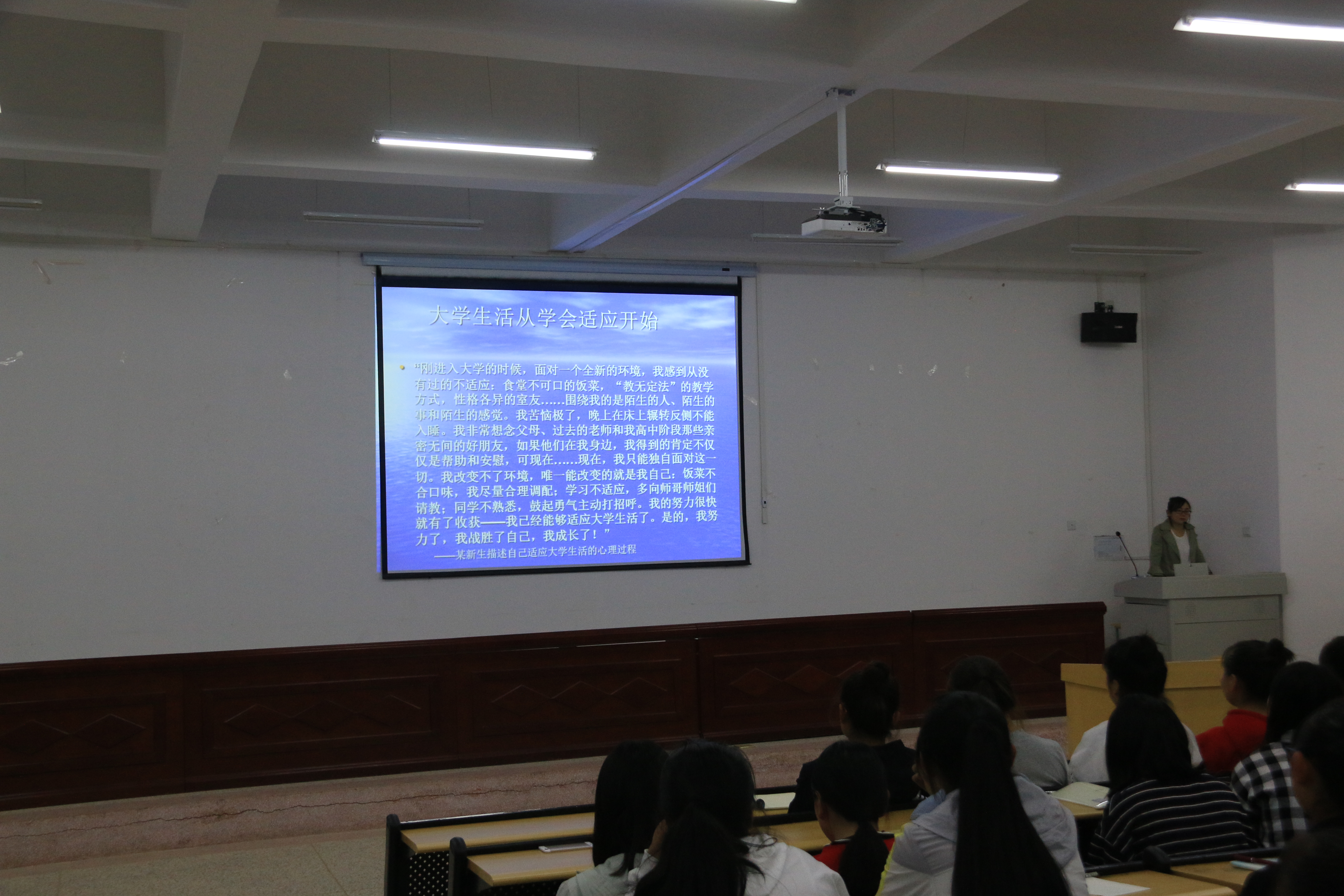 此次講座,幫助大一新生正確認(rèn)識(shí)自我,積極應(yīng)對(duì)挫折,樹(shù)立樂(lè)觀(guān)上進(jìn)的心態(tài),建立良好的人際關(guān)系,消除新生對(duì)大學(xué)生活的種種疑惑,對(duì)他們的心理健康教育是十分必要和及時(shí)的。