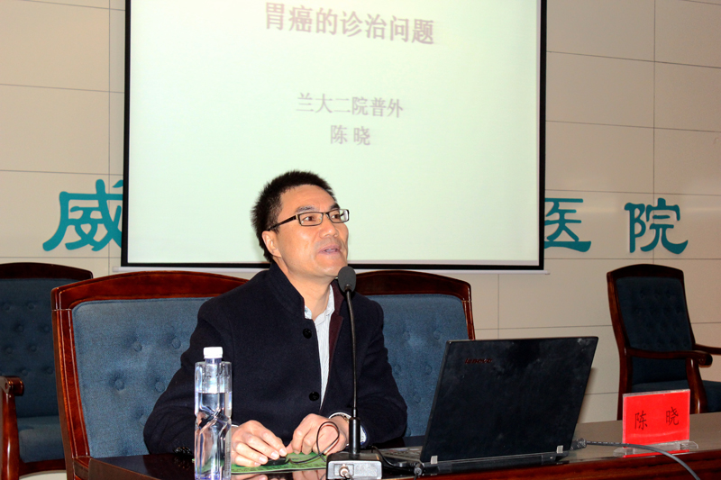 醫(yī)院邀請(qǐng)到蘭州大學(xué)第二醫(yī)院普外三科主任、胃腸外科主任、主任醫(yī)師陳曉和普外二科副主任,副主任醫(yī)師康博雄為大家作學(xué)術(shù)講座。陳曉主講了《胃癌的診治問題》,并與大家分享了他在法國(guó)醫(yī)院和美國(guó)醫(yī)院進(jìn)修學(xué)習(xí)時(shí)的一些感想和見聞。陳曉在講座中結(jié)合臨床體會(huì)說:許多胃癌患者在就診時(shí)已經(jīng)發(fā)展為中晚期,失去了手術(shù)機(jī)會(huì)。他呼吁全社會(huì)要認(rèn)識(shí)到對(duì)胃癌高發(fā)地區(qū)、高危年齡、高危人群進(jìn)行篩查的必要性。醫(yī)生要對(duì)有癥狀的患者及早進(jìn)行胃鏡檢查,爭(zhēng)取做到早發(fā)現(xiàn)、早診斷、早治療。講座中,陳曉就外科手術(shù)吻合方式選擇與直屬附屬醫(yī)院外科主任滕志勇醫(yī)生進(jìn)行了現(xiàn)場(chǎng)互動(dòng)。