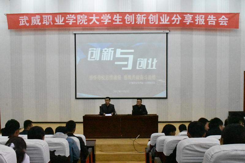 為進一步提升我院大學生的綜合素質(zhì)和創(chuàng)新、創(chuàng)業(yè)能力,培養(yǎng)大學生的創(chuàng)業(yè)意識、思維和技能,增強大學生的專業(yè)信心及創(chuàng)業(yè)信心,以創(chuàng)業(yè)帶動就業(yè),正確引導(dǎo)同學們以健康積極的心態(tài)開展創(chuàng)新、創(chuàng)業(yè)及就業(yè)活動。2017年11月2日,我院07級優(yōu)秀畢業(yè)生蘆超創(chuàng)業(yè)就業(yè)分享報告會在學院正德廳隆重舉行。本次大會由創(chuàng)新創(chuàng)業(yè)中心承辦,我院07級畢業(yè)生蘆超,現(xiàn)任甘肅擺渡人文化發(fā)展有限公司總經(jīng)理、武威職業(yè)學院大學生創(chuàng)業(yè)導(dǎo)師、共青團創(chuàng)業(yè)宣講團成員、甘肅菜鳥電子商務(wù)有限公司特聘講師,應(yīng)邀出席并做了精彩的報告。全院師生二百多人參加了此次大會,報告會由雙創(chuàng)中心胡建宏老師主持。