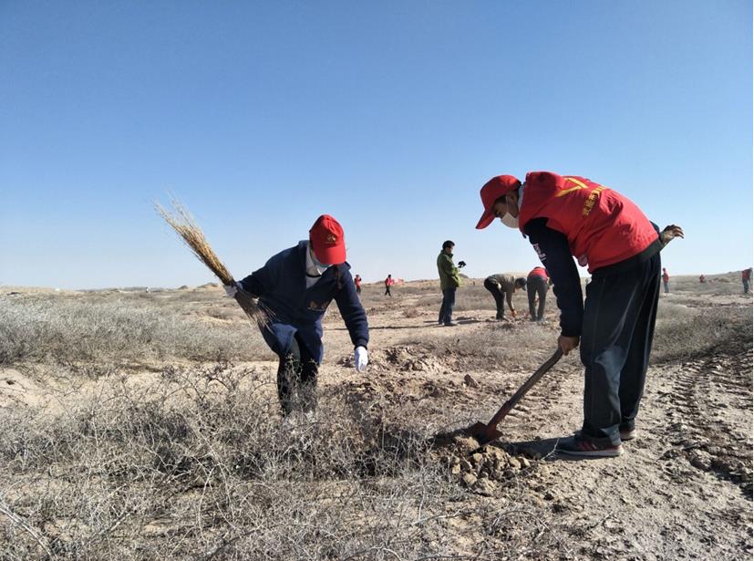 院團(tuán)委組織團(tuán)員青年壓沙造林志愿服務(wù)活動(dòng)