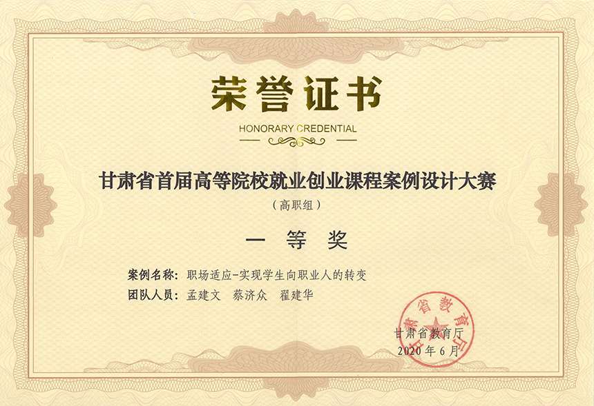 榮獲甘肅省首屆高等院校就業(yè)創(chuàng)業(yè)課程案例設(shè)計大賽(高職組)一等獎
