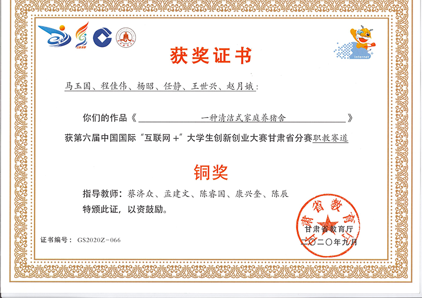 第六屆中國(guó)國(guó)際“互聯(lián)網(wǎng)+”大學(xué)生創(chuàng)新創(chuàng)業(yè)大賽甘肅省分賽職教賽道《一種清潔式家庭養(yǎng)豬舍》