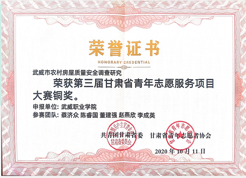 第三屆甘肅省青年志愿服務項目《武威市農(nóng)村房屋質(zhì)量安全調(diào)查研究》