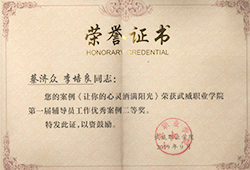 12.項(xiàng)目組成員蔡濟(jì)眾2019年9月撰寫的《讓你的心靈灑滿陽光》榮獲武威職業(yè)學(xué)院第一屆輔導(dǎo)員工作優(yōu)秀案例二等獎